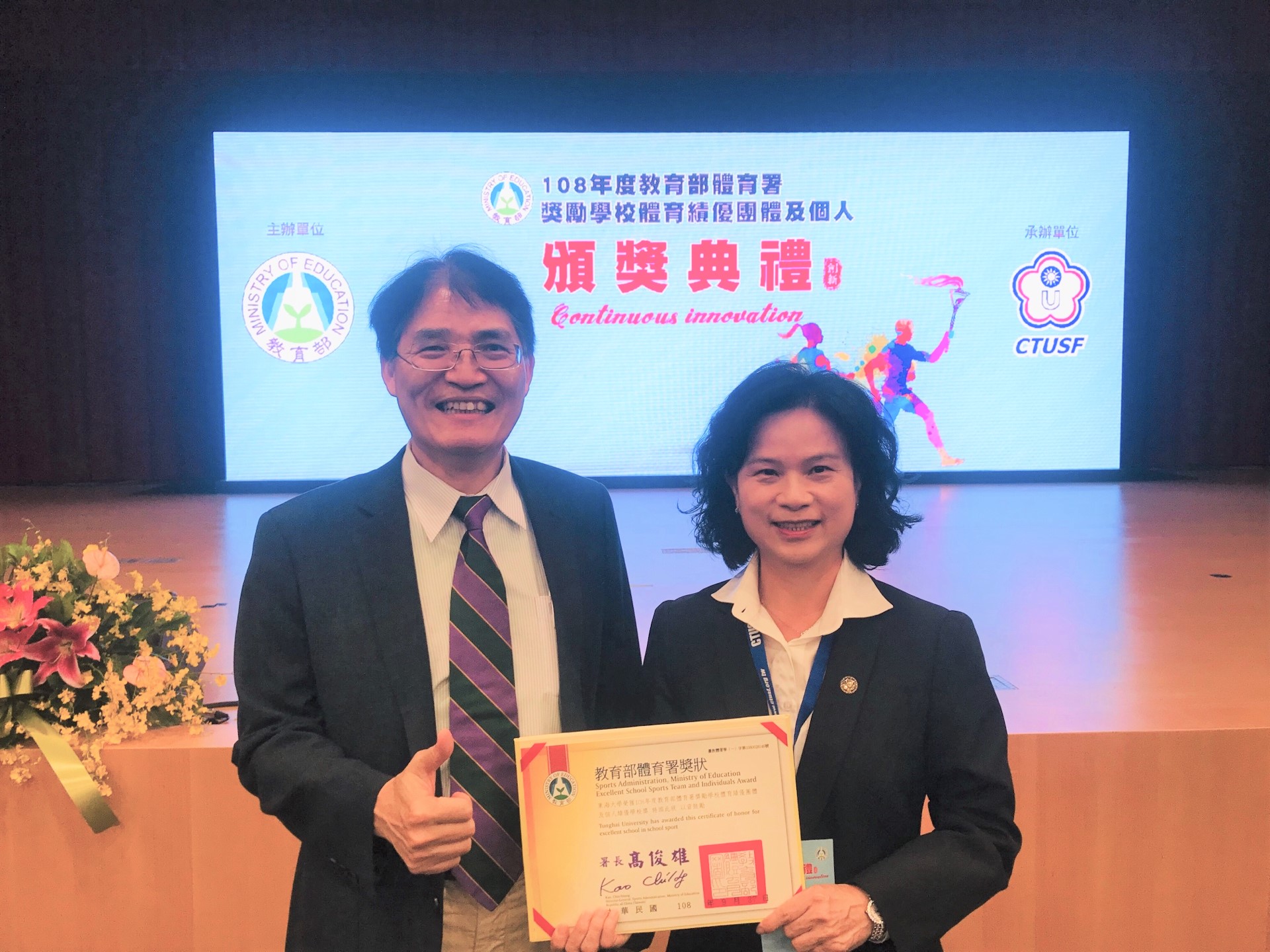 The curricula design and teaching, athlete selection/training/coaching, administrative supports and service, as well as volunteer service system in physical education at Tunghai University was recognized by the Sports Administration of the Ministry of Education. An Excellent Performance Award in Physical Education was granted to Tunghai on September 27, 2019. Director of the Department of Physical Education Shu-Chen Huang received the Award on behalf of Tunghai.