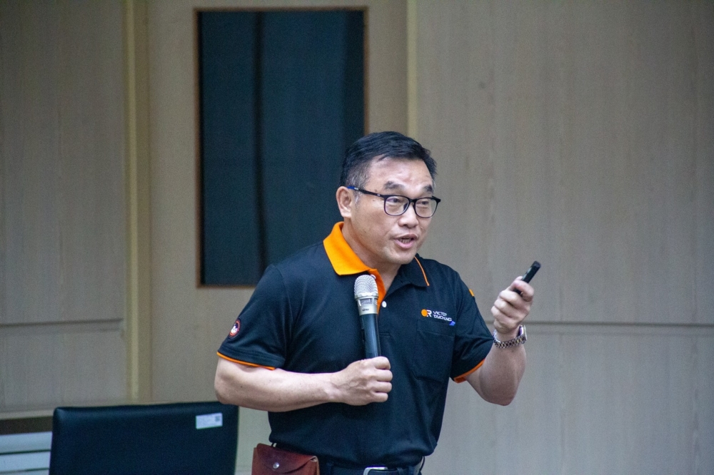 Mr. Hong-Lin Hu, Vice Marketing Director of Victor Taichung, introduced the environment and organization of the company before sharing his personal career exploration experience. He recommended the students to find their right jobs after trying various possibilities and understanding personal preferences. Mr. Hu concluded his presentation with a career SWOT analysis activity for the students and encourage them to revisit the analysis on a 6-month basis.